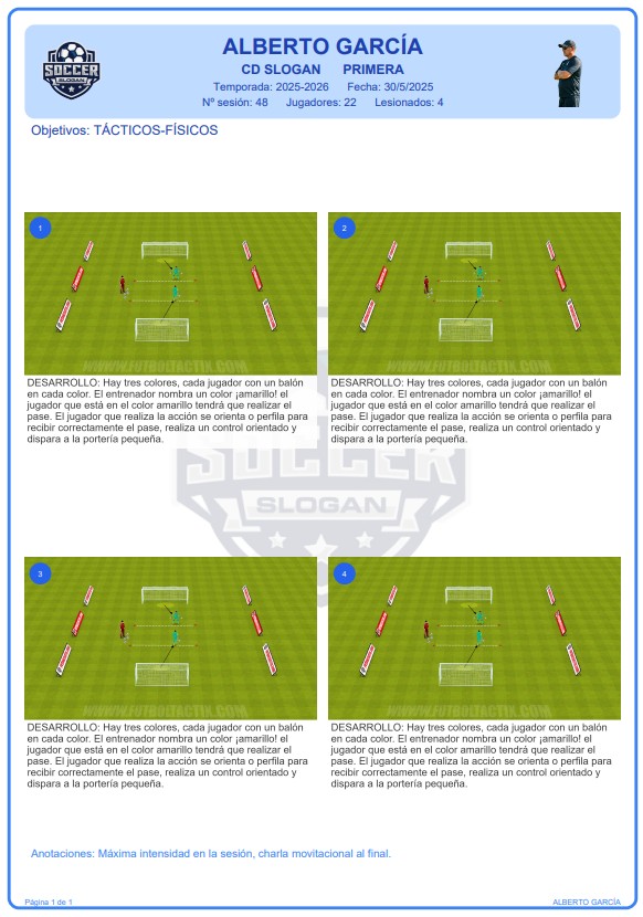 - Ahora podrás organizar todo tu trabajo con un click, planificación, sesiones, ejercicios, plantillas, actas, análisis, fotos, vídeos, etc…